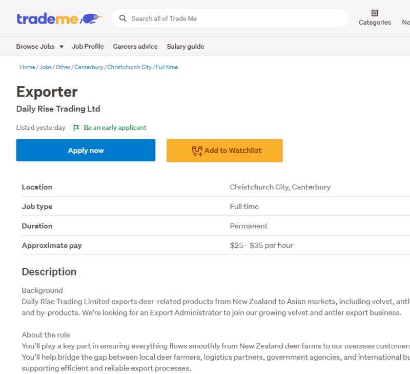 基準外広告:ベルベット(鹿茸)エクスポーター■ クライストチャーチ