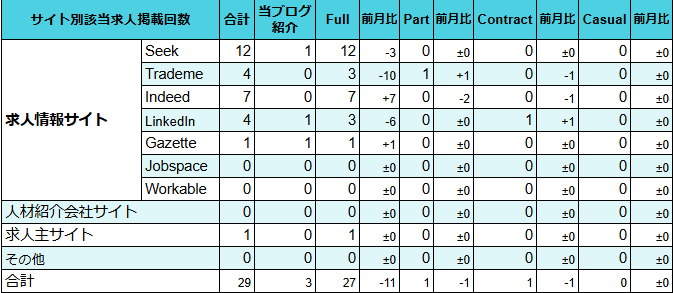 Seek と Trademeの2強はシェアを約10%落としましたが、踏ん張りをきかせたSeekに対してTrademeは前月比-10と大幅に減少し、2媒体でのシェア合計を59.26%としました。