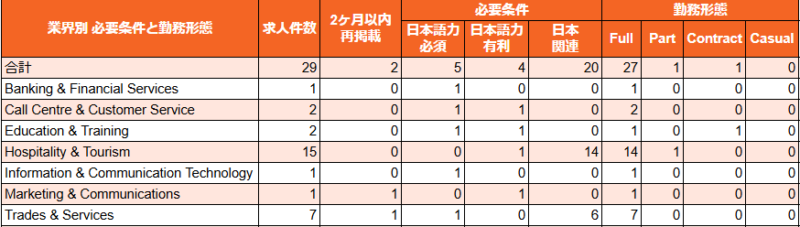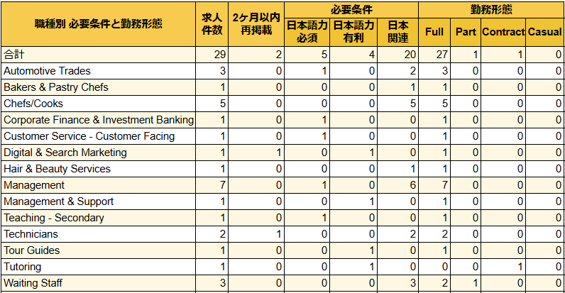 ニュージーランドには多くの日本食レストランがあるため、必然的に日本関連の 「技術・知識・経験」を求める職の多くも日本食レストラン関連が高い割合を占めるのが通例です。