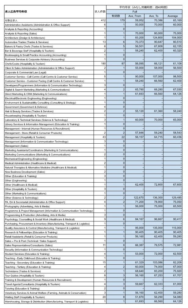 データ公開 PART1 – 2025年ニュージーランド 平均給料中央値 業界・職種別 日本語力必須・有利/ 日本関連求人
